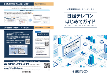 日経テレコンをはじめて使う方、さらに情報収集力を高めたい方へ、「日経テレコン はじめてガイド」と「日経テレコンスクール」をご用意しています。