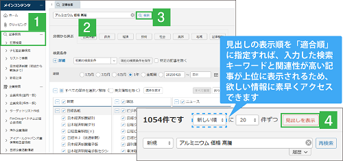 受託事業者からの価格改定の申し入れの妥当性や、自社からの価格交渉の合理性を検討する際には、市場全体の動きである「外部環境」のデータが決定的な役割を果たします。日経テレコンに収録されている国内外の記事情報を検索することで、業界全体のコスト動向や賃金水準など、交渉材料となる客観的な事実を広範に収集できます。